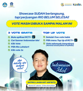 Meskipun showcase telah berlangsung, perjuangan belum berakhir. Kesempatan untuk membawa Satrio melangkah lebih jauh menuju panggung final Indonesian Idol masih terbuka. Voting masih dibuka hingga malam ini, dan setiap suara sangat berarti untuk menentukan langkah berikutnya.