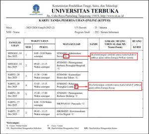 - Jadwal ujian mengikuti jadwal yang tertera di Kartu Tanda Peserta Ujian (KTPU) masing-masing yang dapat dilihat pada akun MY UT (ut.ac.id)